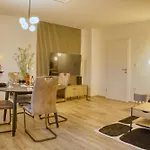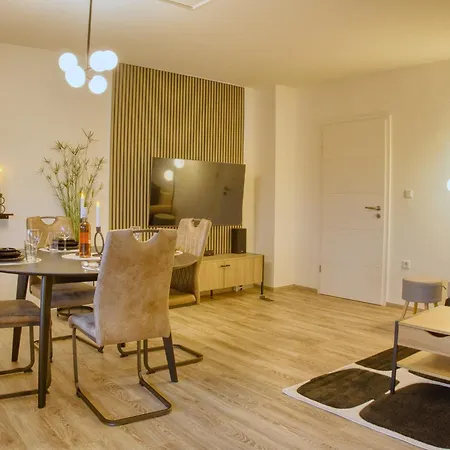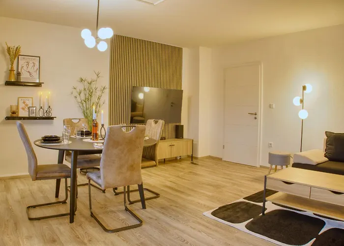 Japandi Stil Nahe Dus,Bahn Fuer Business Und Familien ferielejlighed ligger omkring 3 km fra Asia Therme Wellness Spa og byder på udsigt over haven. Denne ferielejlighed måler 70 m² og har 1 soveværelser, 1 badeværelser og et fuldt udstyret køkken.